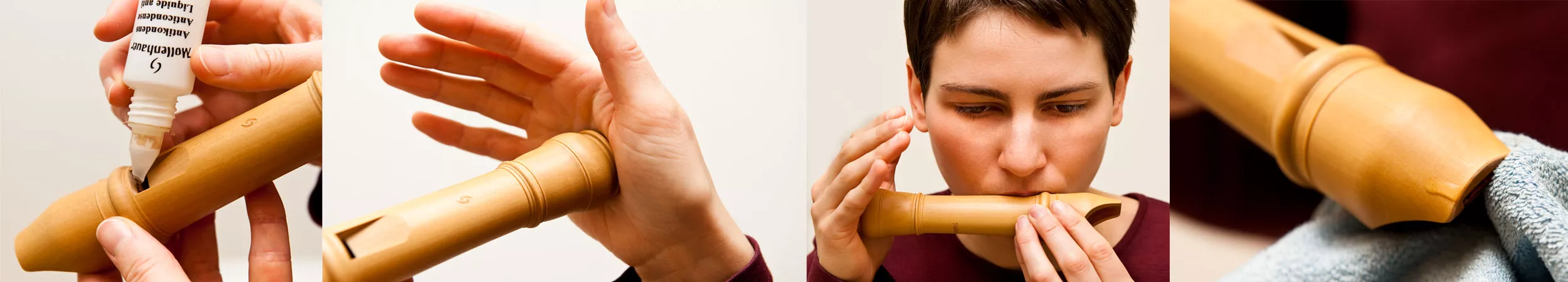 Eine Blockflöte aus edlem Holz will eingespielt werden. Geben Sie Ihrem Instrument ausreichend Zeit, sich an die beim Spielen auftretende Feuchtigkeit zu gewöhnen. Dabei können Sie sich mit den Besonderheiten Ihres Instruments vertraut machen.